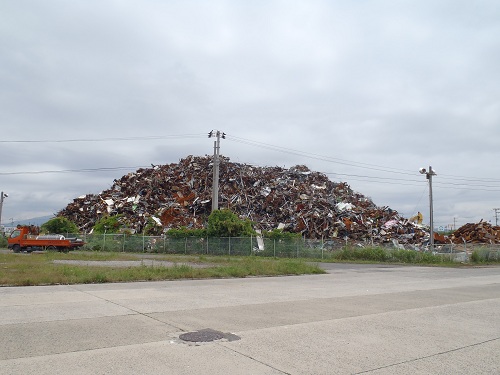 内港の中に鉄くずの山。